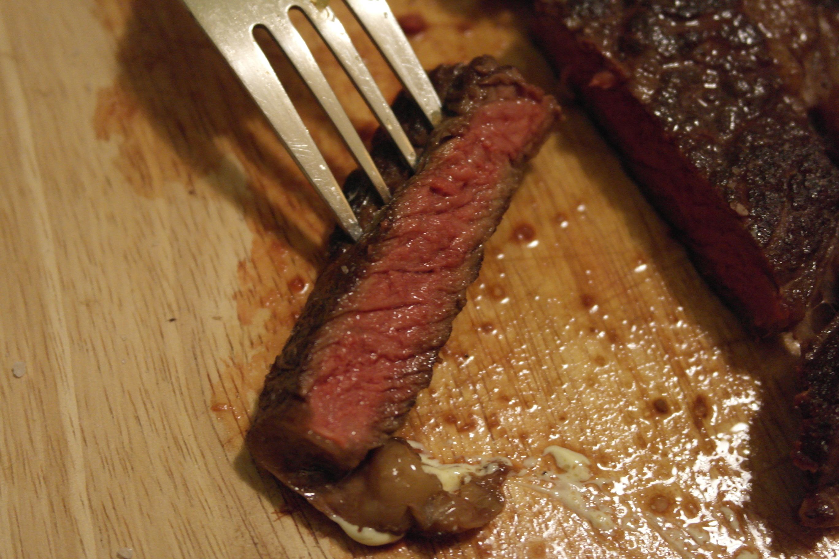 Das rauchte wie Sau, und sofort kamen mir grandiose Röstaromen in die Nase – 350 °C sei Dank. So was habe ich bei einer Pfanne, ob beschichtet, aus Stahl, oder gusseisern noch nie erlebt. Die Hitze macht’s! Beim Wenden war dann auch direkt klar: Jau, das hat gesessen! Eine schöne braune Farbe, recht gleichmäßig gebraten, und dann die Aromen… meine Wohnung roch noch drei Tage nach Steak – so intensiv waren die Röstaromen.