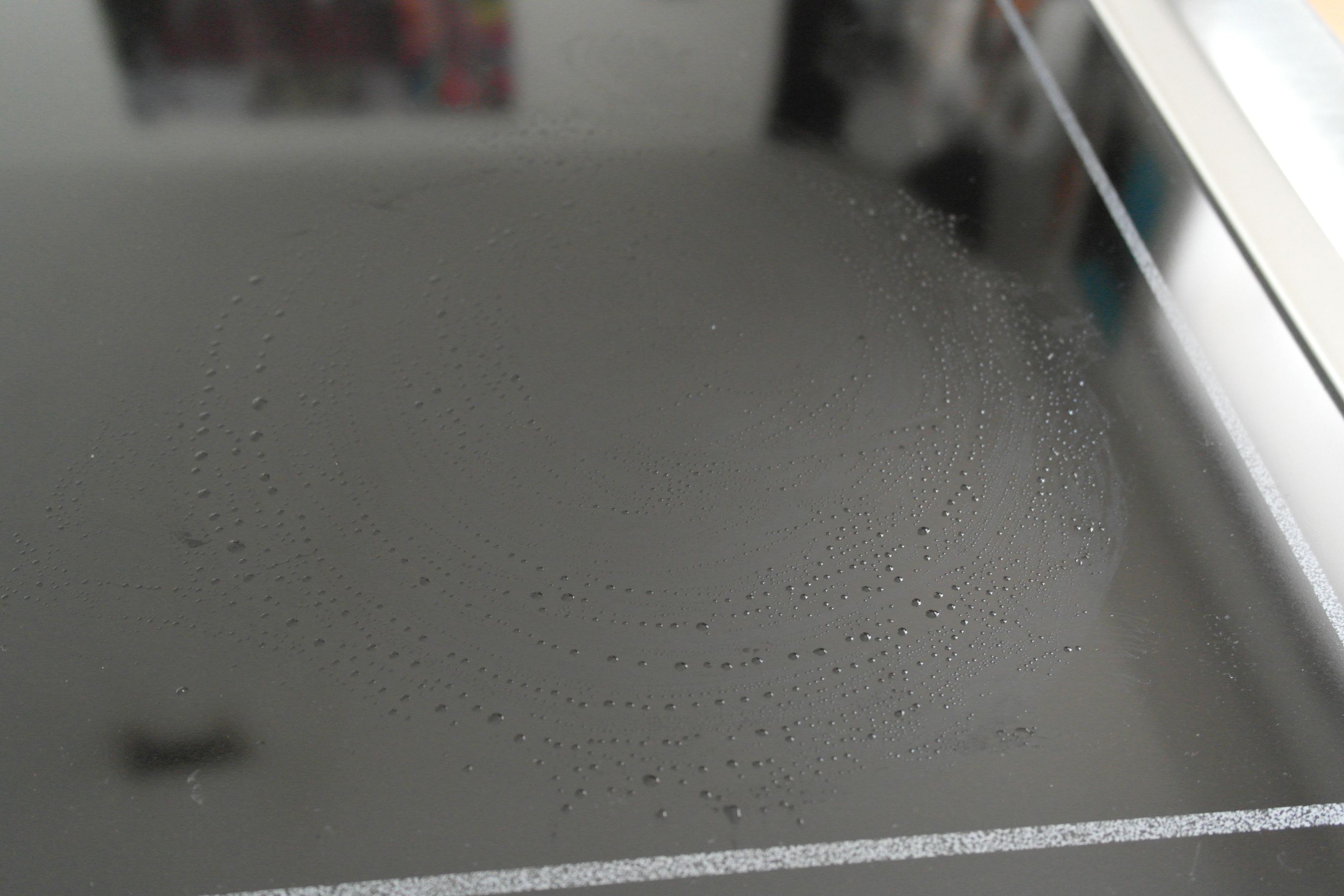 Der Vorteil bei der Glaskeramikoberfläche ist der, den ihr auch bei dem klassischen Herd mit Glaskeramik habt: Mit dem Rasiermesser-Schaber-Dingen kann man bequem alles eingegebrannte lösen, danach mit einem feuchten Tuch abwischen, und für das Finish nutzt man den normalen Keramik-Schmiergel-Reiniger, oder simple Scheuermilch – tadaa alles wie neu!