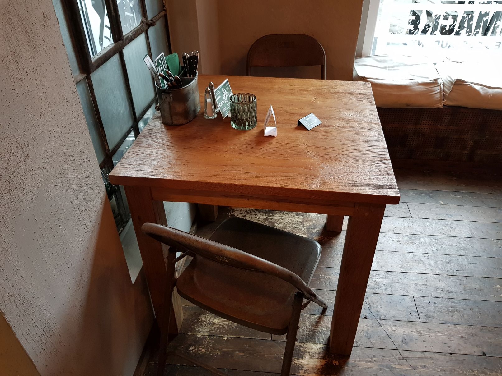 Das Waschbecken, welches eine Art rostige Tonne mit Ventil ist, aus welchem das Wasser kommt, gefällt ebenfalls und passt ebenfalls stimmig in das Gesamtbild. Zudem riecht es einfach nur angenehm auf der Toilette, statt zu stinken. Ich als Foodblogger und Restauranttester, der sich immer die Toiletten sehr genau anguckt, bin der Meinung, dass die sehr viel über das Restaurant an sich Aussagen.