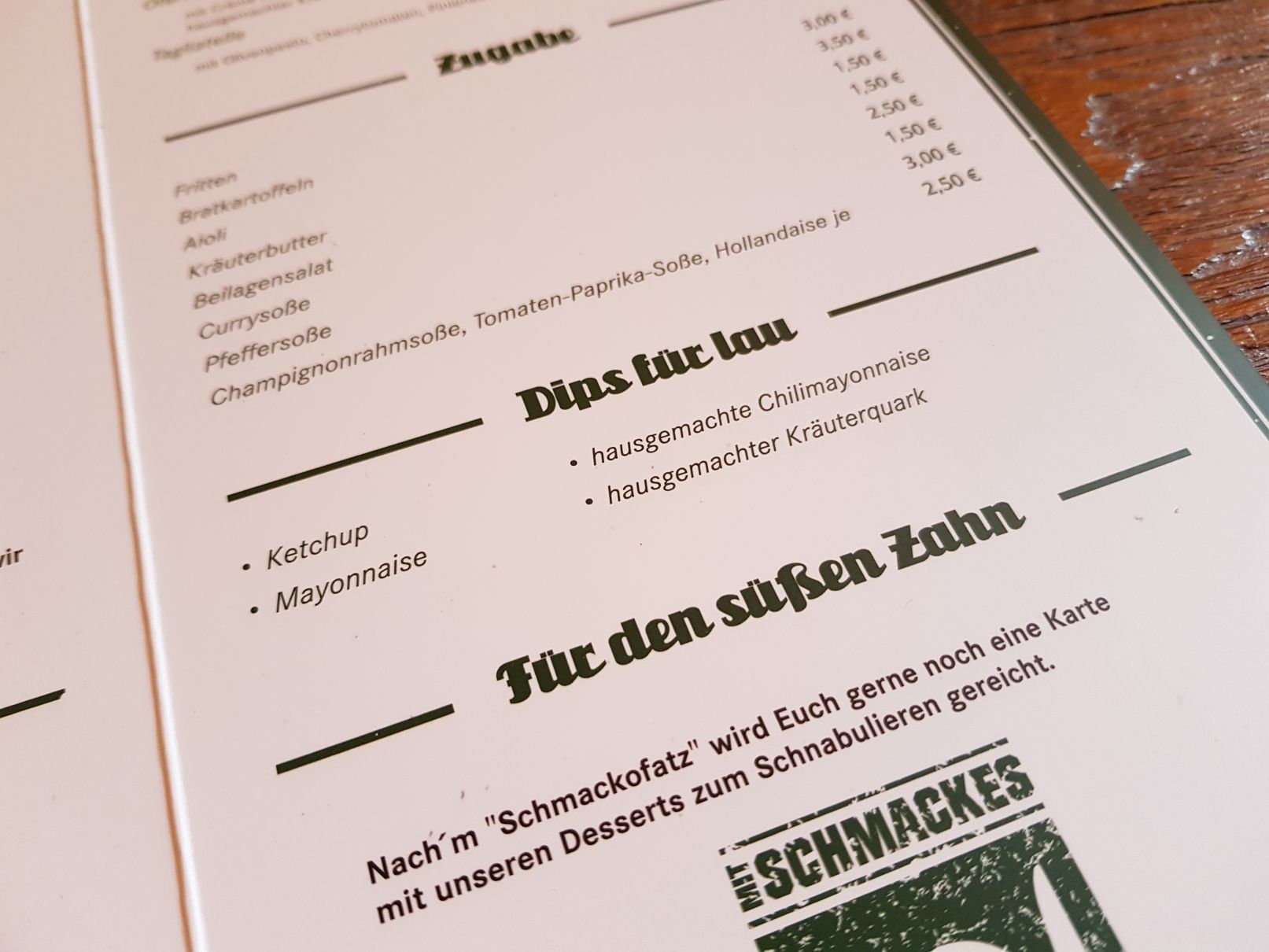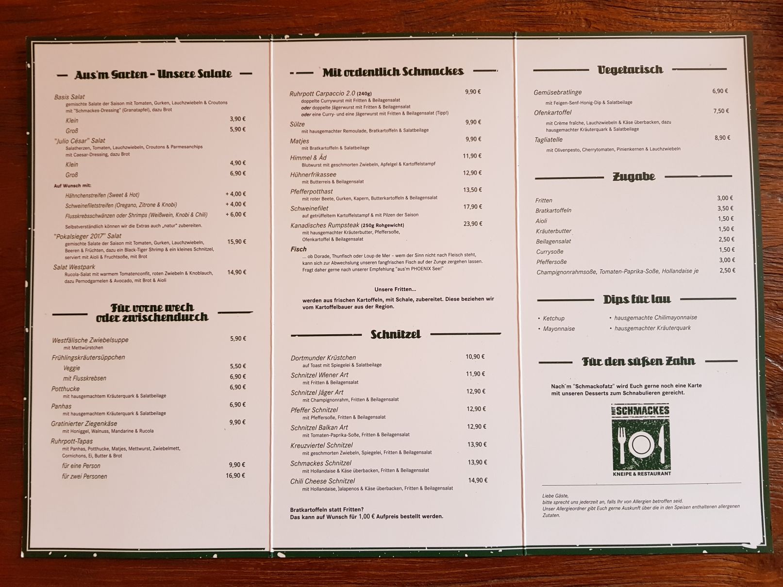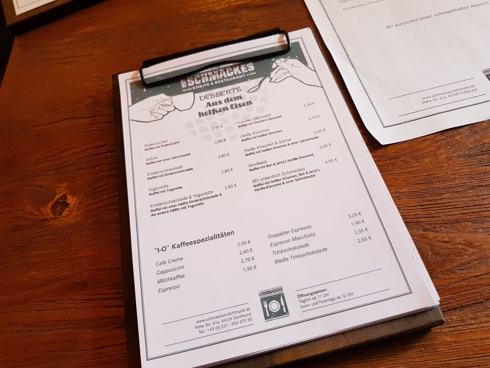 Als ich neulich mal wieder einige Zeit meines Lebens in Facebook verschwendete, poppte ein „Ad“ (also eine Werbung o.ä.) auf und erwähnte das „Mit Schmackes“ in Dortmund. Da ich ein Gedächtnis schlechter als ein Sieb habe, weiß ich nicht mehr worum es genau ging, wohl aber, dass ich den Laden direkt googlete. Dies vor allem, weil er in meiner alten „Heimatgegend“, in der ich aufgewachsen bin, liegt. Ich war baff! Fast 150 Bewertungen bei Google und ich (ein Stufe 7 Google Local Guide) kenne den Laden nicht?! WTF? Ich musste mir also direkt die Speisekarte angucken und waren erfreut darüber, dass dort typische Dortmunder / Ruhrpott-Speisen beworben werden.