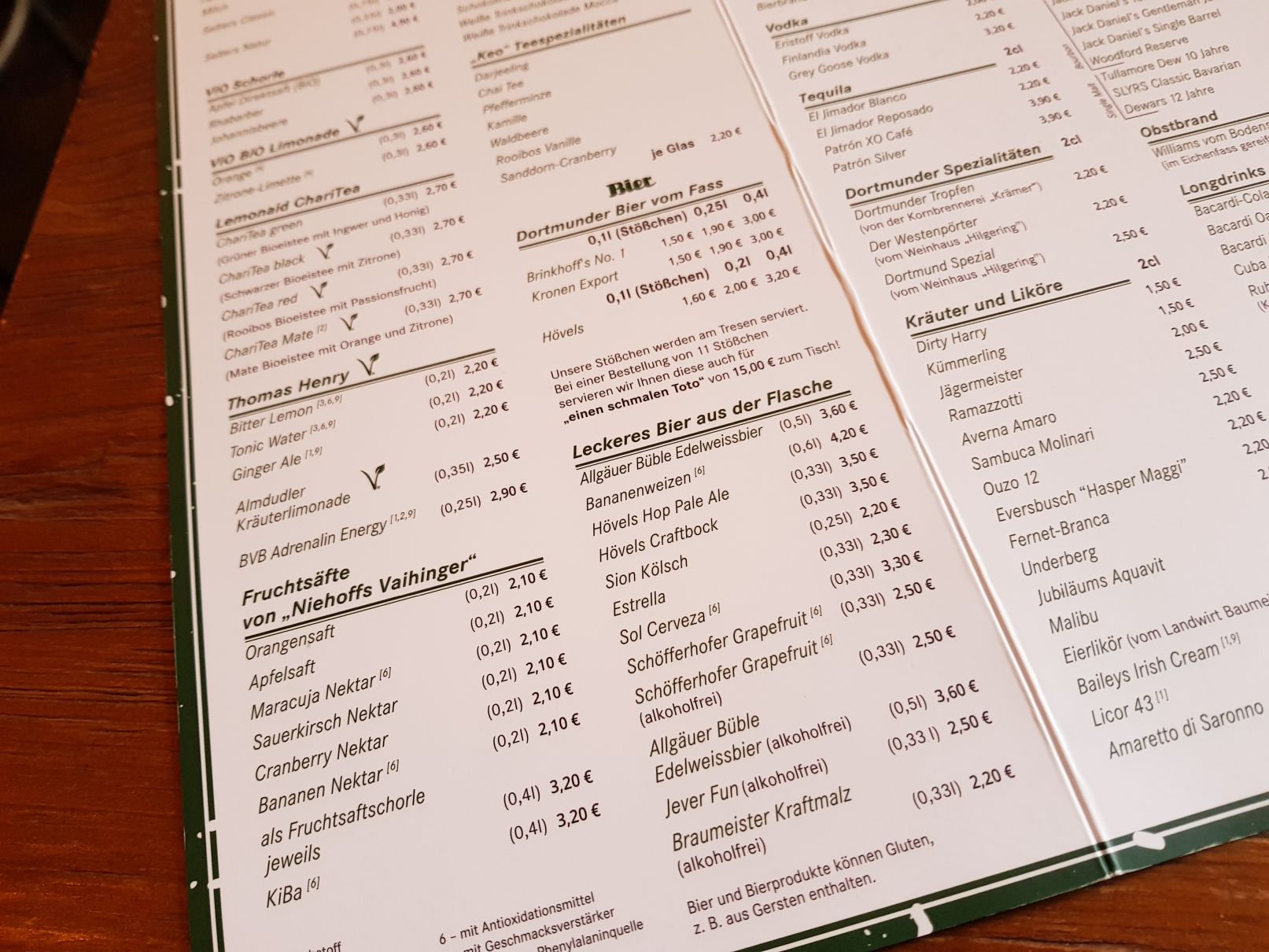 Einige wenige simple Deko-Elemente sind vorhanden, die die Stimmung untermalen. Die großen Lampen in Glühbirnen-Form passen zu „Ruhrpott“. Das „Highlight“ ist aber ganz klar die Toilette: Auf dieser laufen tatsächlich Hörspiele, die man sich beim Geschäft anhören kann. Noch geiler ist aber auf der Männertoilette das Würfelspiel (auf der Frauentoillete war ich nicht – gibt es dort ähnliches?!). Nicht sonderlich hygienisch, aber absolut grandios von der Idee her – wer gewinnt muss ’ne Runde geben. Klasse.