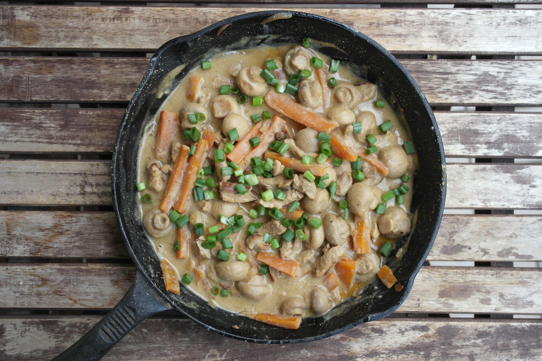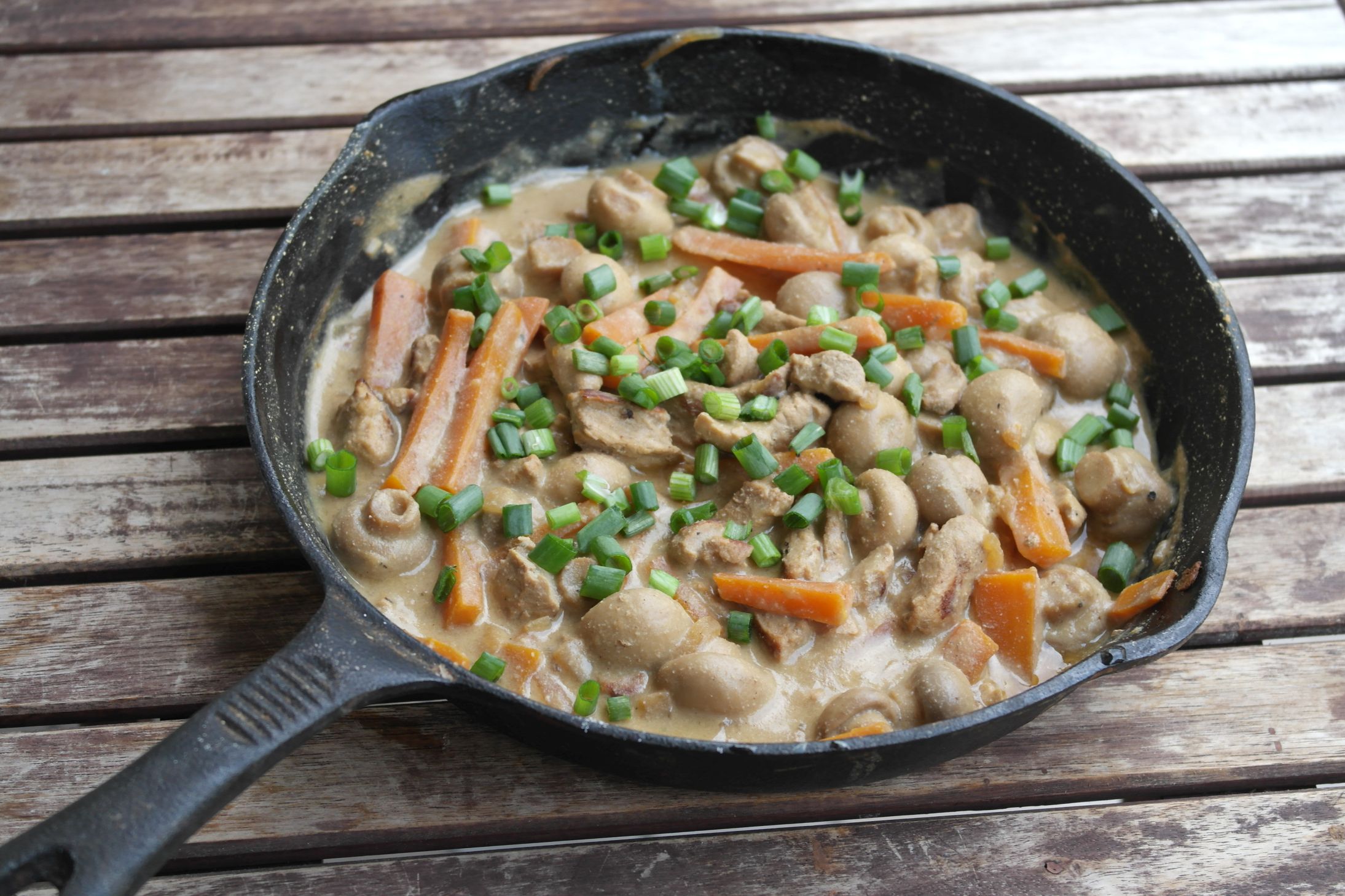 Bei meinem Rezept für eine Geschnetzeltes Pfanne verzichte ich bewusst auf eine Beilage. Ich finde es ist perfekt dieses Gericht mit z.B. gutem Brot direkt aus der Pfanne zu essen – mehr braucht es da nicht!