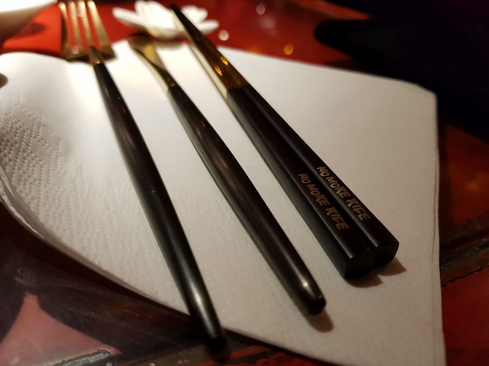 Am Ende war ich leider kaum satt, trotzdem ich alles in allem 18,60 € auf den Tisch legen musste. Zu viel Geld für die Menge, auch wenn die Qualität erhaben war. Das Erlebnis an sich ist es wofür man zahlt. Vermutlich auch irgendwo „der Name“. Das Ambiente, die oft passende Musik (Anfangs lief was Lounge-mäßiges, dann Rock oder so. WTF? ROCK?), die tolle Deckenbeleuchtung, die schön angerichteten Gerichte… Das ist das wofür es sich lohnt ins No More Rice Dortmund zu gehen. Am besten vorher einen Döner als Basis essen…