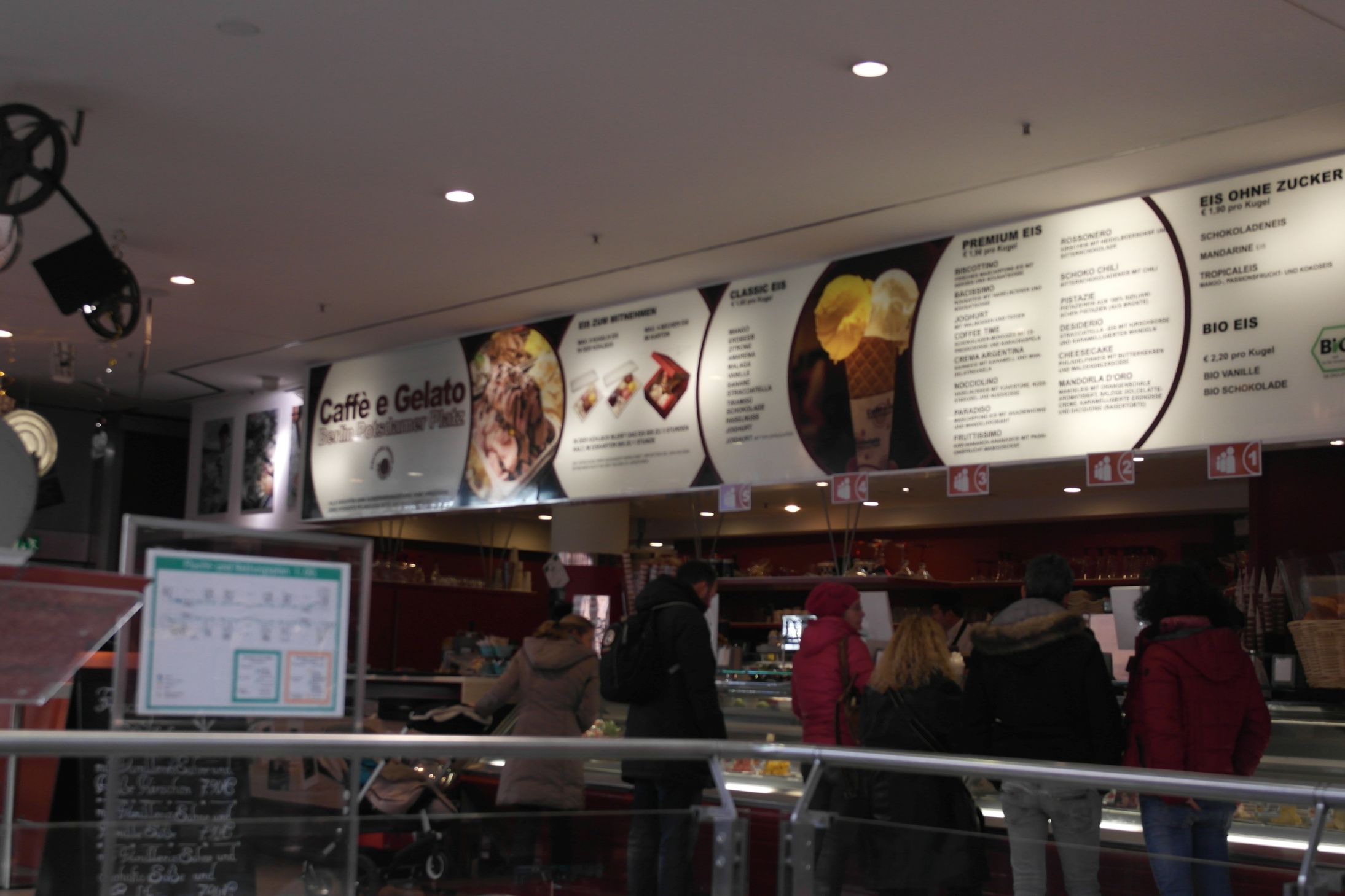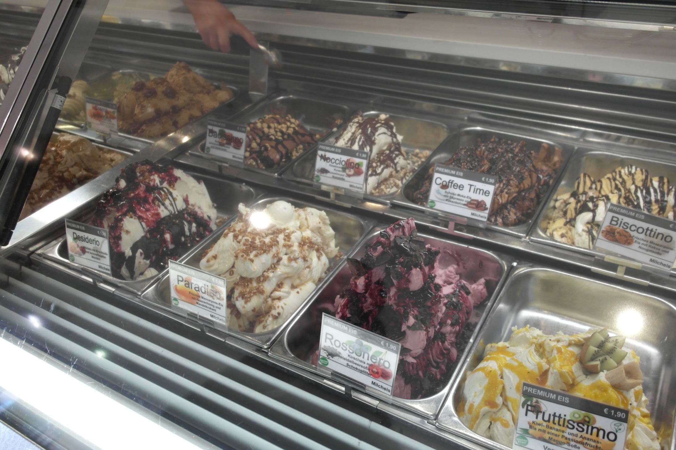 Es gibt zig Eissorten verschiedener Arten und Preisklassen. Auch zuckerfreis- und bio-Eis ist zu haben. Es gibt natürlich diverse Kaffeespezialitäten und auch sowas wie Waffeln und Crepes sowie verschiedene Eisbecher. Folgend ein paar Bilder.