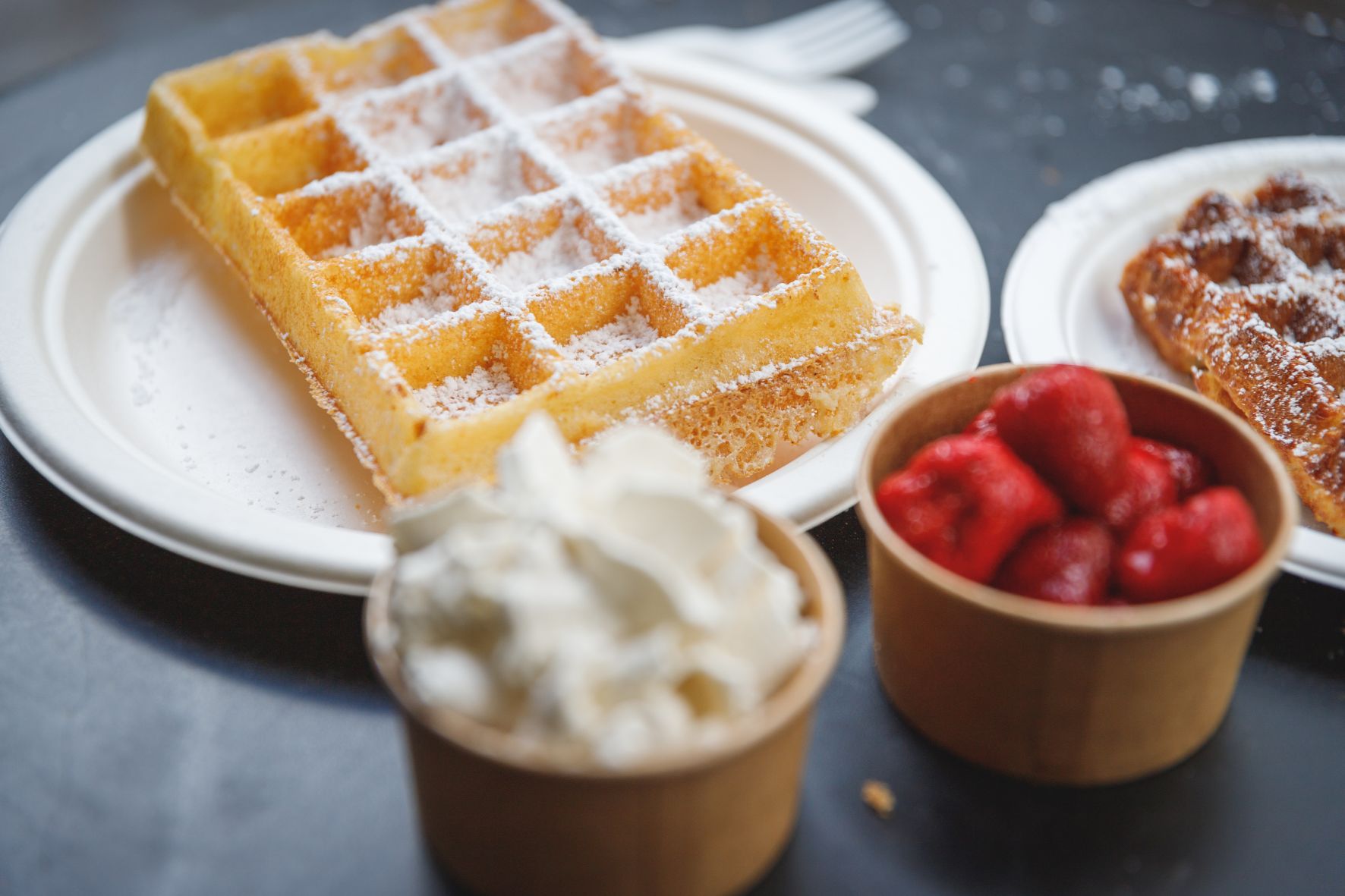 Ich empfehle euch hier ganz klar die Lütticher Waffel. Ich fand sie noch besser als die Brüsseler. Sie ist dicht, kompakt, und safitg. Der massig enthaltene Zucker karamellisiert im Waffeleisen, und die Waffel wird einfach göttlich. Die Brüsseler Waffel ist von den Ausmaßen schön imposant, aber man erwartet etwas anderes. Sie ist locker luftig, und sie ähnelt eher einem luftigen Gebäck, als einer klassischen saftigen Waffel. Sie ist außen knusprig, innen weich, aber eben eher trockener. Ebenfalls zu empfehlen, aber eben sauteuer. Gekocht Erdbeeren sind mal etwas anders als Kirschen, ebenfalls empfehlenswert.