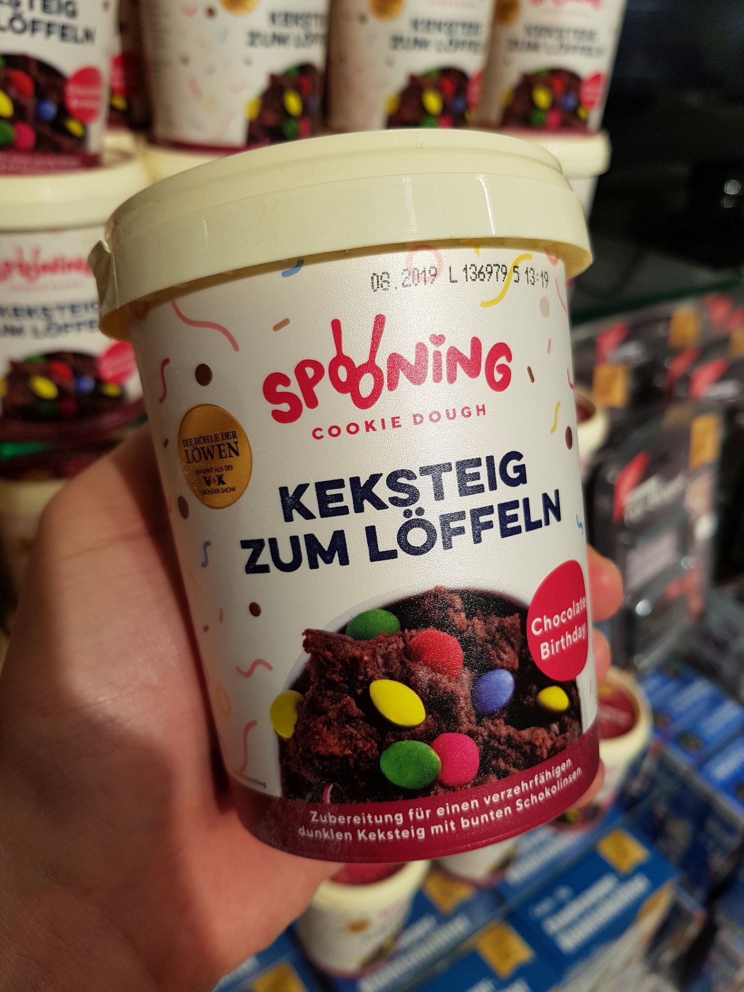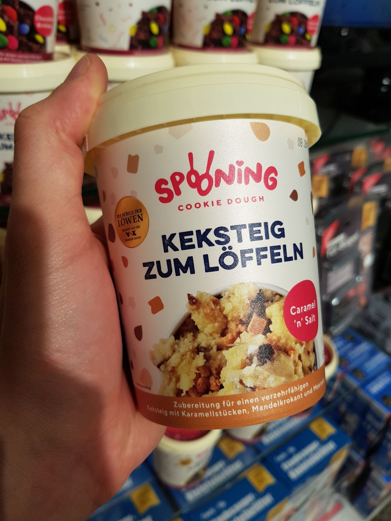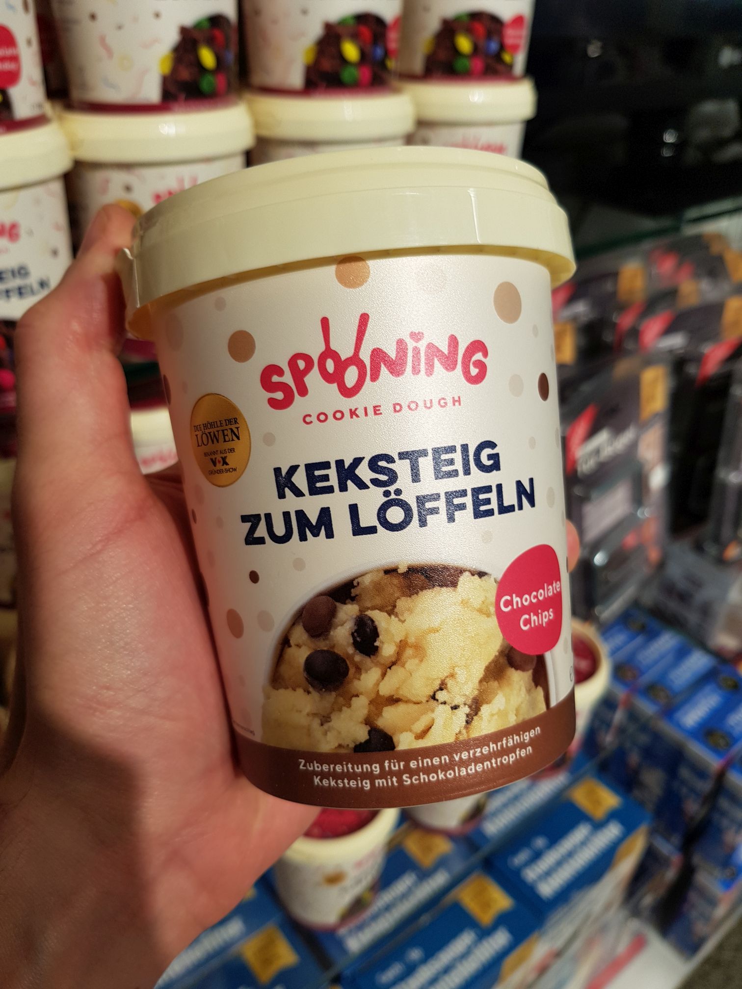 Auch hier in Deutschland bekommen wir bereits seit unzähligen Jahren fertigen Keksteig gekauft. Zum Beispiel zu Weihnachten aus dem Kühlregal. Das Spooning Cookie Dough ist also Beileibe nichts Neues oder eine bahnbrechende Erfindung. Lediglich das Marketing und die Einbindung in die Sendung „Die Höhle der Löwen“ ist neu. Also immer schön etwas Wind aus den Segeln nehmen. Die Idee ist schlicht „abgekupfert“ meiner Meinung nach, um es salopp zu sagen. Nichts desto trotz eine tolle Sache, dass es das auch in Berlin jetzt gibt. Und ist eben gerade der Hype der hier bei uns geweckt wird respektabel. Ich ziehe dafür meinen Hut (den ich nicht trage, wie scheiße würde das denn aussehen?!).