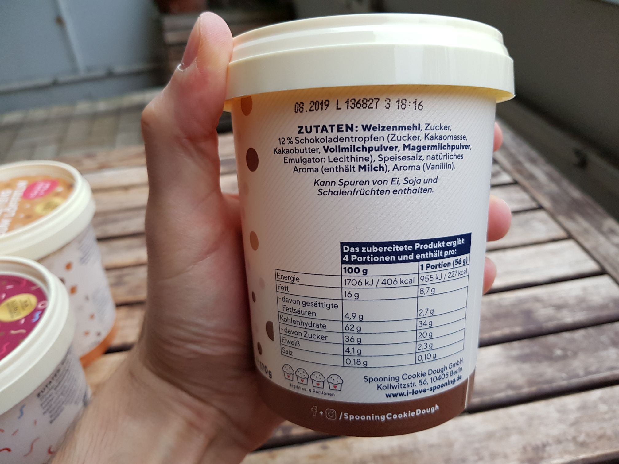 Ausnahmsweise fasse ich mich kurz mit meinem „Vorgeplänkel“. Ich wusste noch gar nicht lange etwas vom Spooning Cookie Dough, dem essbaren Keksteig. In der VOX Sendung „Die Höhle der Löwen“ wurden diese Produkte, die auf einer „Keksteigdiele“ in Berlin basieren, präsentiert. Ich habe zwar keine Ahnung von dem Drumherum der Sendung, aber als Foodblogger präsentiere ich euch hier natürlich den „essbaren Teil“ – den Keksteig aus dem Becher. Viel Spaß mit dem Testvideo und dem Bericht 🙂