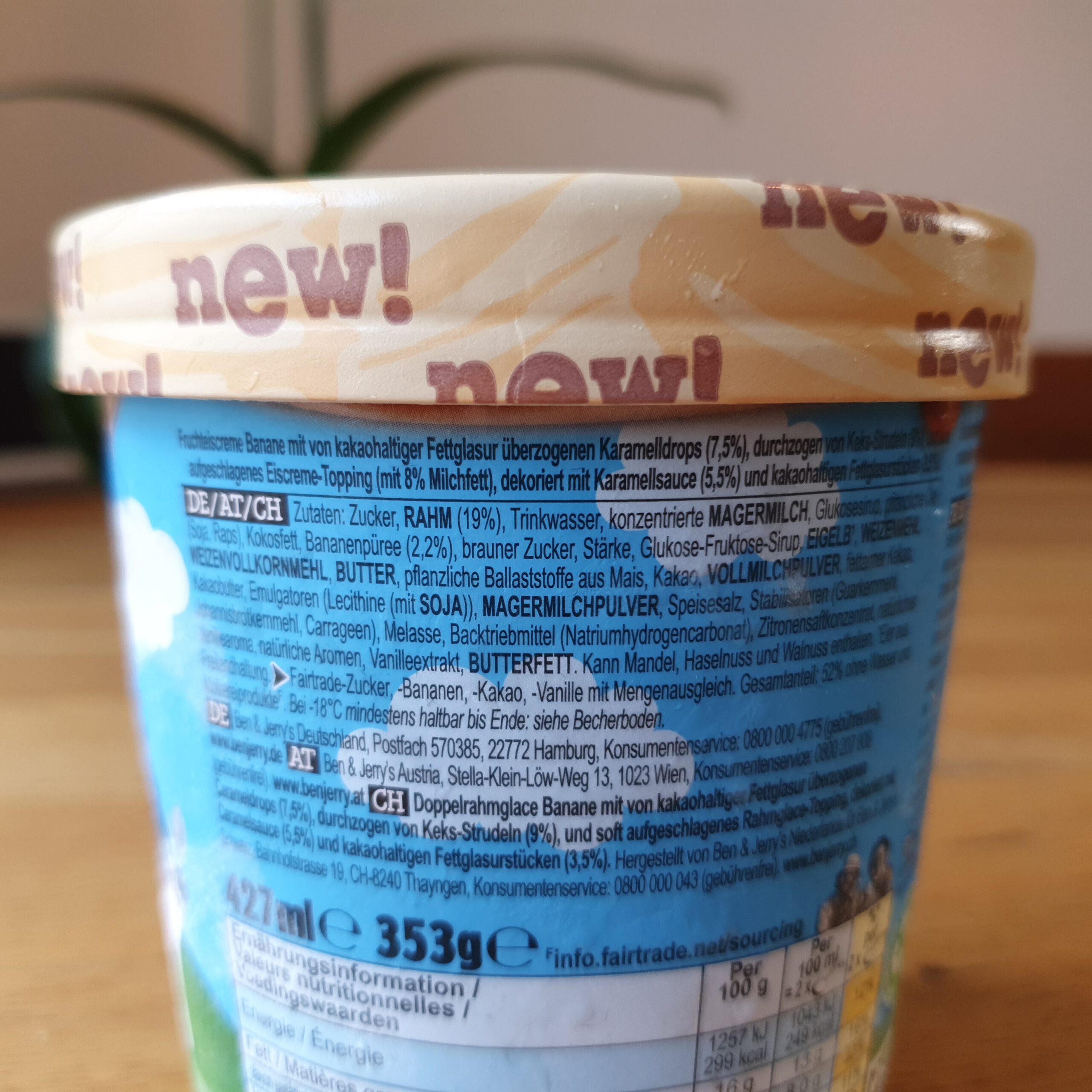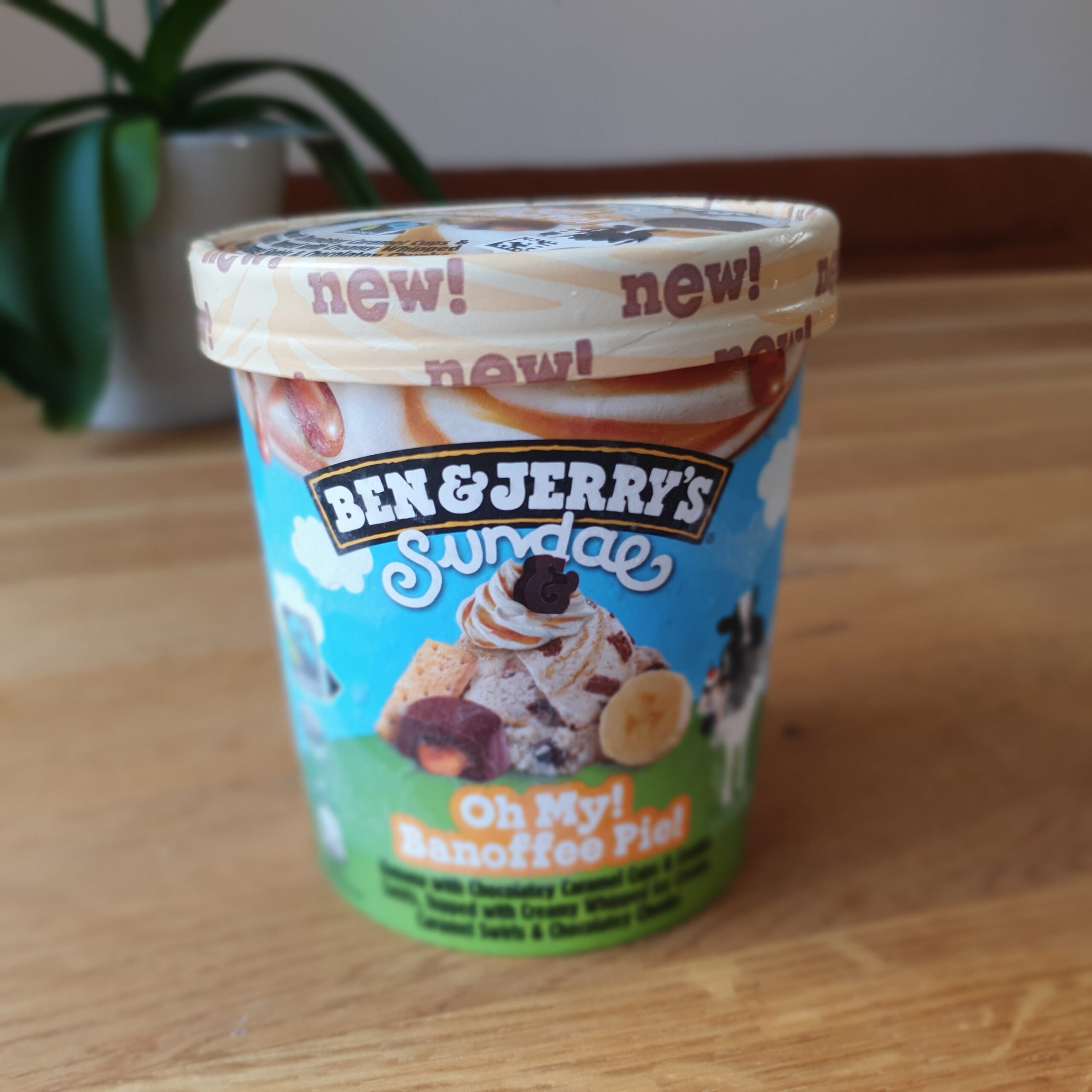 Die Sorte Oh My! Banoffee Pie! besteht aus Bananen Fruchteiscreme, mit Karamell gefüllten Fettglasurstücken, kalkhaltigen Fettglasurstücken, Karamellsauce und Keksstrudel. Also sehr viel drin! Hier geht’s zum Testvideo: YouTube-Video